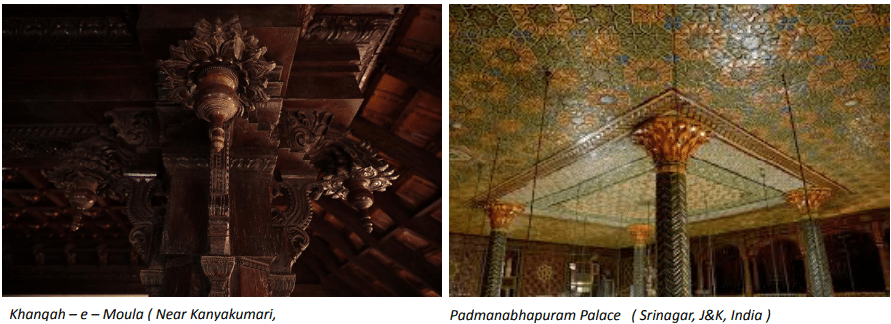Wood carving ( also known as Nakashi ) is one of the earliest ways humans have used to express their emotions. It stands as one of humanity’s oldest and most enduring craft forms, where a simple block of wood is expertly persuaded to transform into a spectacular spectacle. Nakashi Art proudly represents the cultural heritage of India even today. From the Padmanabhapuram Palace near Kanyakumari, which is considered to be the largest wooden palace in Asia, to the Khanqah – e – Moula of Srinagar, one of the oldest Muslim shrines in Kashmir, showcasing an intricately ornate wooden structure – one can witness how this craft has evolved while maintaining its essence across millennia.