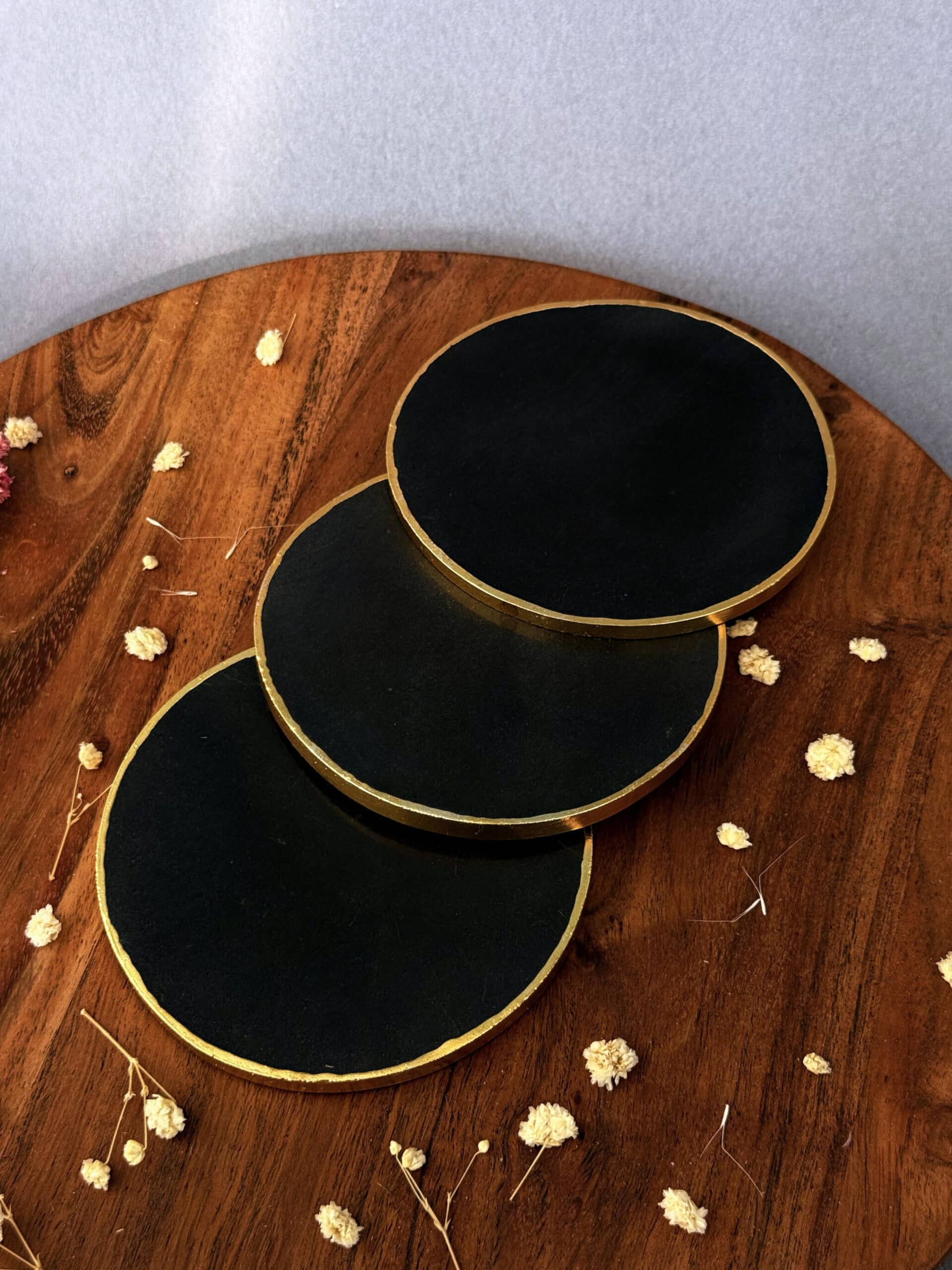Enhance your space with this set of 4 Black Agate Coasters, crafted from natural Black Agate stone. Known for its grounding and protective properties, Black Agate exudes sophistication and strength, making it a perfect addition to your home or office décor. Black Agate Coasters are not just functional, but a symbol of protection and balance. Whether used for serving drinks, enhancing décor, or grounding energy, they bring sophistication and stability to your space.