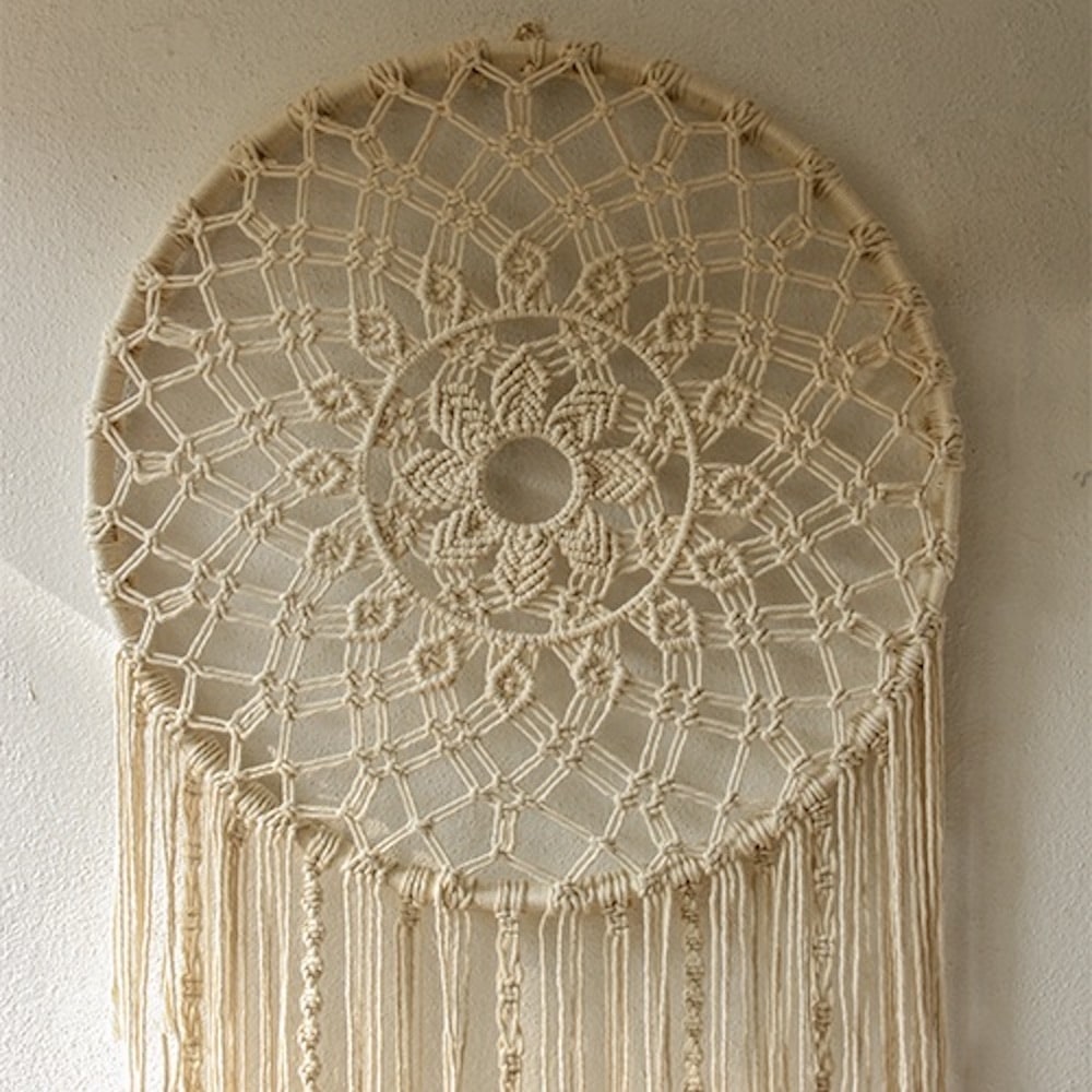 A dreamcatcher is considered a sacred hoop and keeps away bad dreams. Macrame dreamcatcher is made of biodegradable cotton thread. The product will add artist touch to your decor with its intrinsic design. Each knot is carefully crafted by ace artisan and boast of perfection. The piece can embellish your reading corner, bedroom as well as living space.