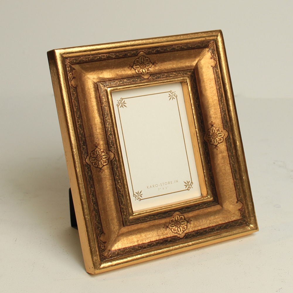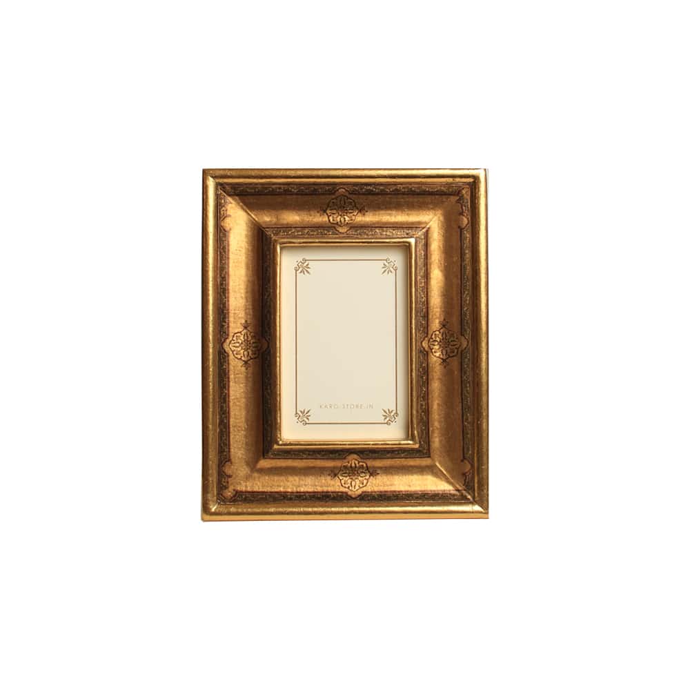 Our Noor Photo Frame is a timeless piece of home décor. Handcrafted with an antique gold finish, this frame features intricate motifs at every corner, adding a regal touch to your cherished memories. Perfect for any mantle, side table, or shelf, the Noor frame embodies both luxury and nostalgia, making it an ideal gift for any occasion.