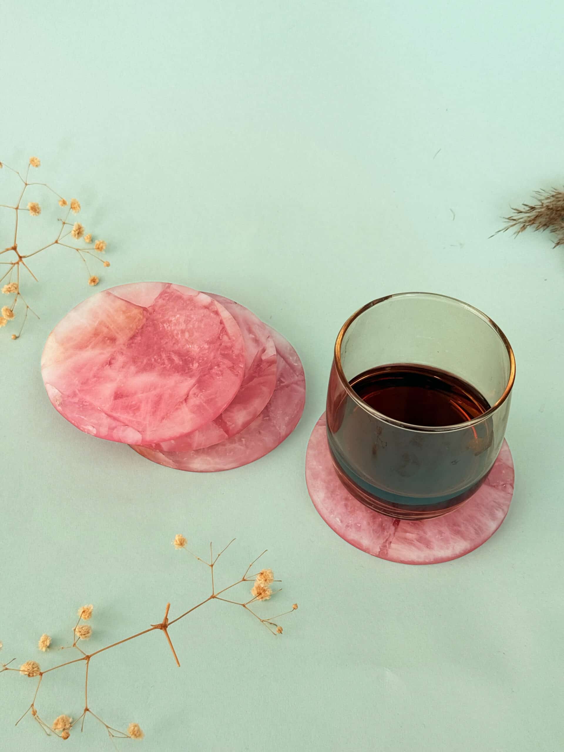 Rose Quartz Round Coasters – Elegant & Healing Home Décor