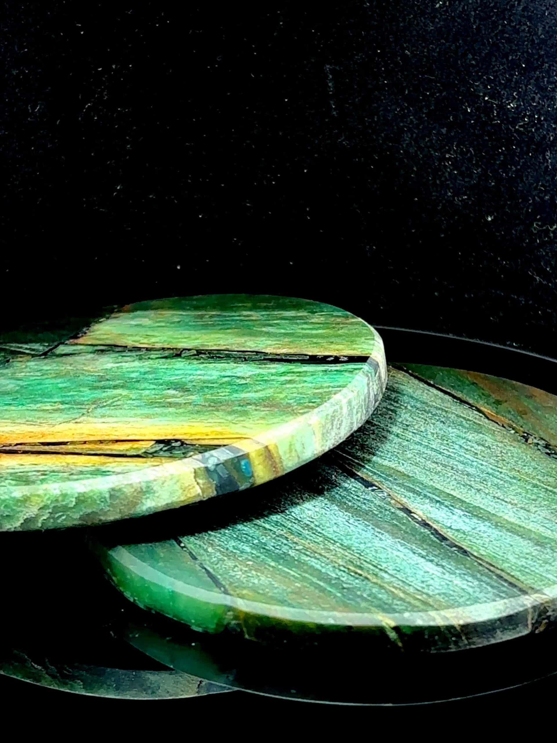 Green Mica Round Coasters – Elegant & Protective Home Décor