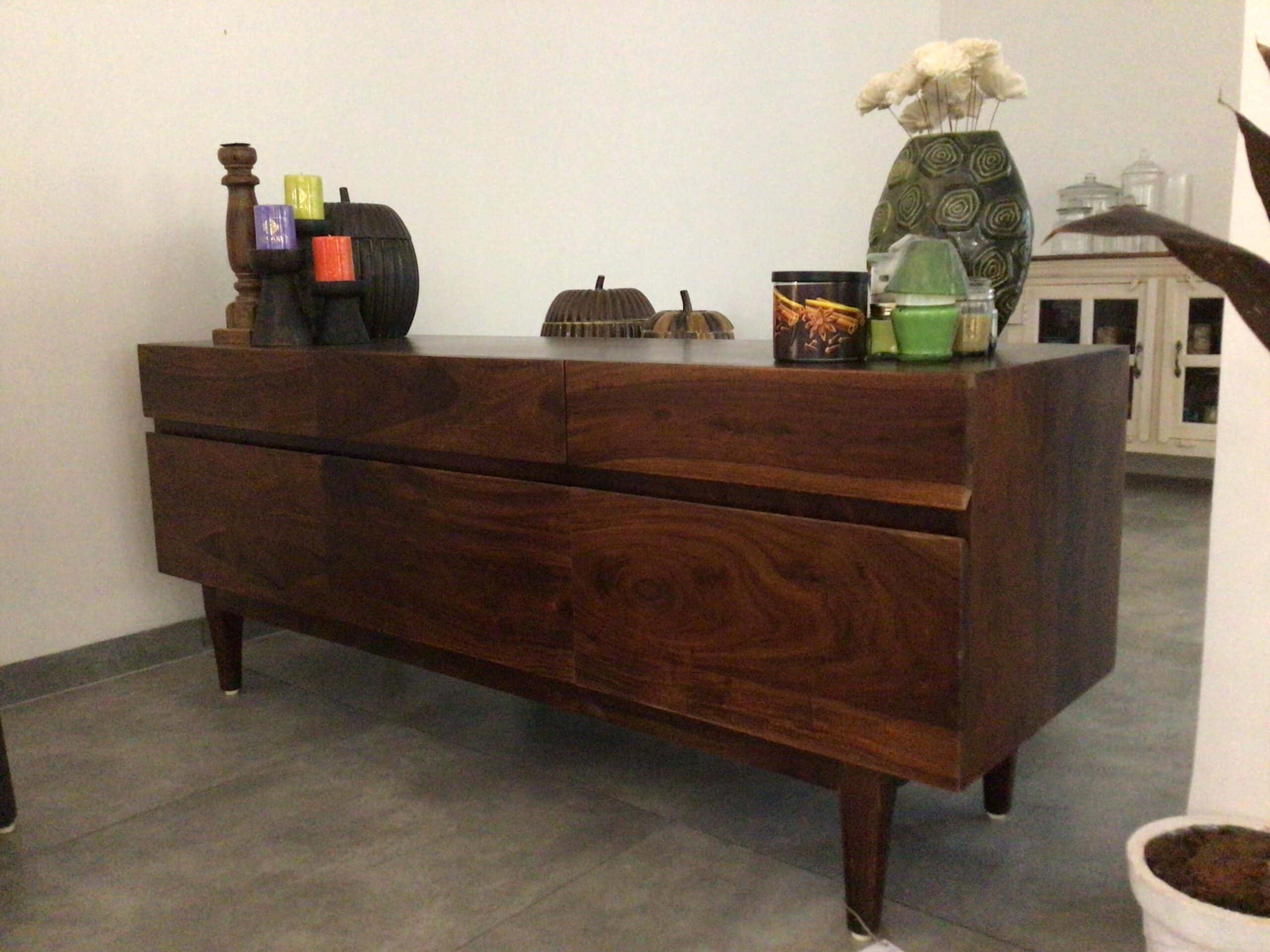 This Sheesham Wood Storage Unit combines timeless craftsmanship with modern elegance. Made from premium Sheesham wood, it showcases rich natural grain patterns that bring warmth and character to any space. The sleek, handle-less drawers offer generous storage while maintaining a clean, minimalist look. Designed with tapered legs for a mid-century touch, this unit works beautifully as a console, sideboard, or living room organiser. Durable, stylish, and functional, it’s a perfect statement piece that elevates any interior.