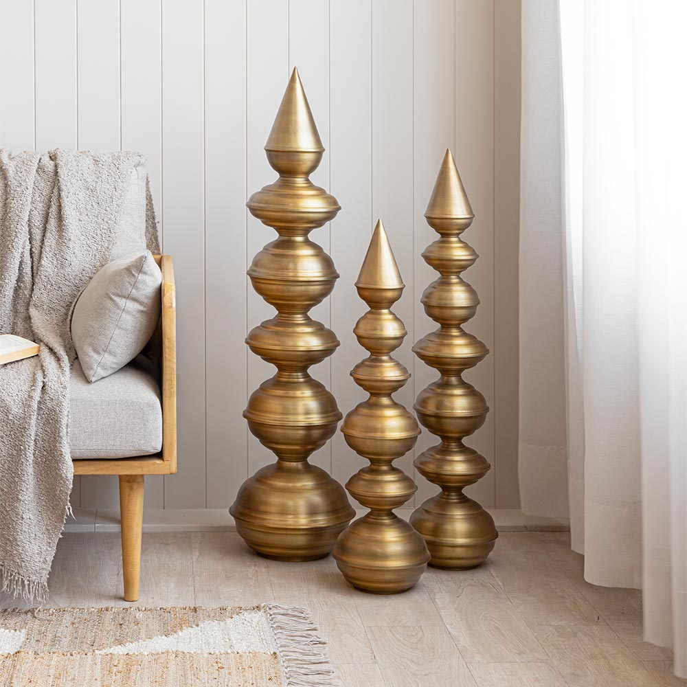 Inspired by the majestic spires of Hindu temple architecture, this elegant trio of brass temple corners captures the timeless essence of spiritual connection. Each handcrafted piece echoes the upward-turning forms seen atop temple sanctums—symbolising a bridge between earth and the divine.